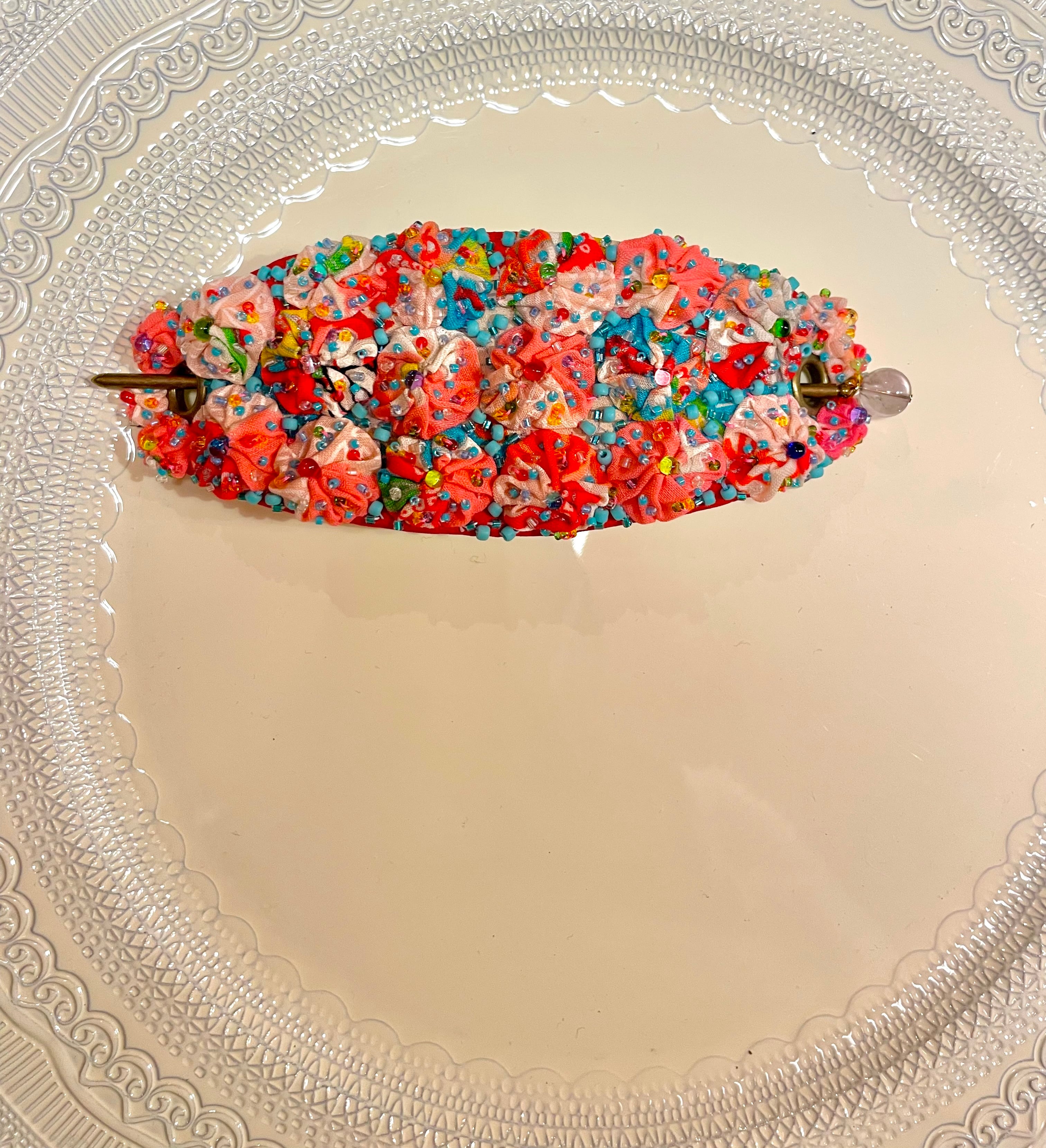 乙女心詰まった髪飾り。愛おしい輝きを纏い、乙女よ咲き誇れ。 6×16cm 裏側 革 昭和中頃からのお祝い着や晴れ着を使用 石、水晶